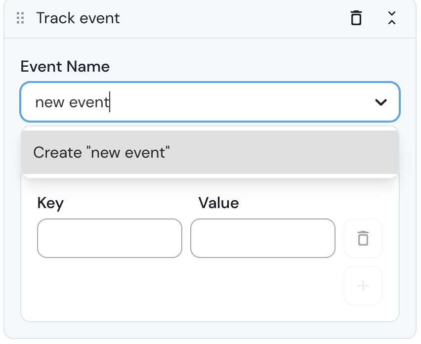 <figure><img src="https://2786867680-files.gitbook.io/~/files/v0/b/gitbook-x-prod.appspot.com/o/spaces%2F-LLTwFwbOqJj4dDhg8Ju%2Fuploads%2FIHNQaU2mLLIEwwfXDmnZ%2FScreenshot%202023-10-24%20at%2016.36.50.png?alt=media&#x26;token=5ab01319-384f-462f-9c93-67b2226e3b72" alt="" width="375"><figcaption><p>Add a Track event step to your block</p></figcaption></figure>