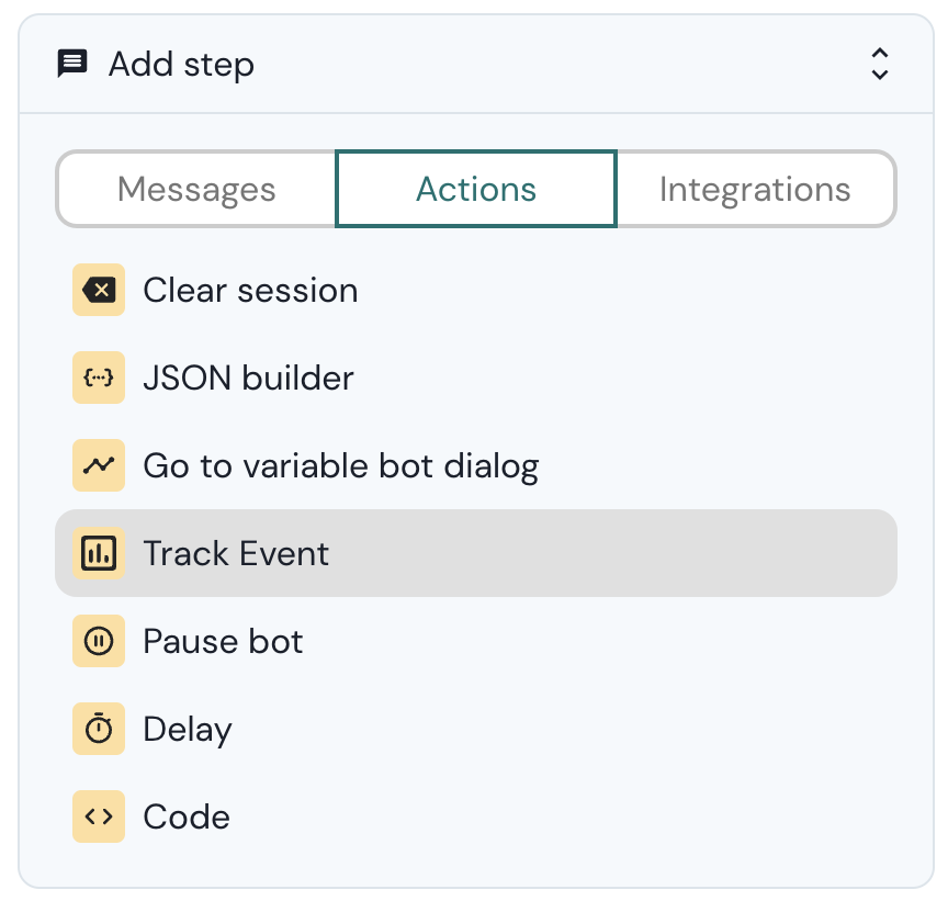 To add a Track event step to your chatbot: