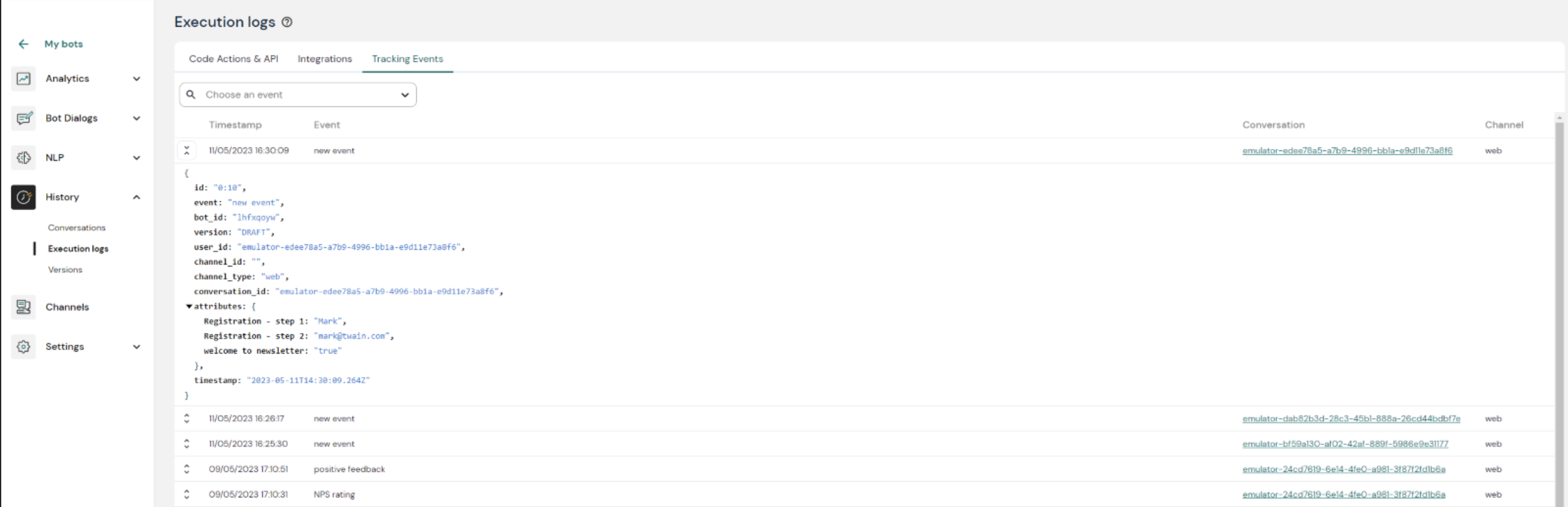 An event can be anything that you would like to track at a certain point of your flow so that you can collect data for your bot analytics. In this page, you will learn to: