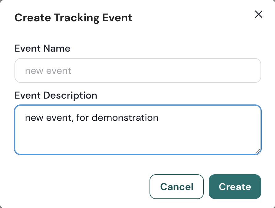 No menu suspenso, clique em Criar. Uma janela Criar Evento de Rastreamento aparecerá.