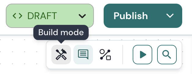 Clique em Modo de construção ícone localizado ao lado do ícone de 'comentário' no menu superior direito. Isso o levará de volta ao modo de construção novamente.