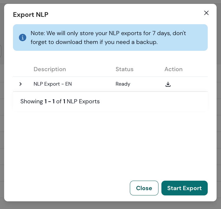 <figure><img src="https://181262846-files.gitbook.io/~/files/v0/b/gitbook-x-prod.appspot.com/o/spaces%2F-LLTwFwbOqJj4dDhg8Ju%2Fuploads%2FmtyoWxlqsdt96AjyDtPP%2FScreenshot%202024-08-27%20at%2014.33.39.png?alt=media&#x26;token=1957613c-0907-4c64-9962-fcad496349ea" alt="" width="375"><figcaption><p>Baixe seus intents exportados.</p></figcaption></figure>