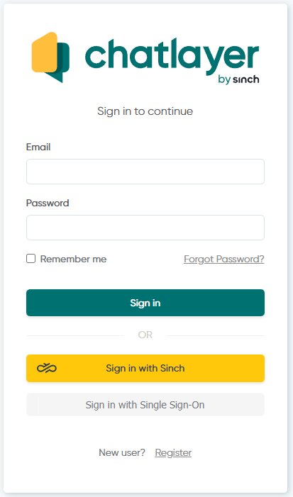 Os usuários podem fazer login no Chatlayer usando seu endereço de e-mail e senha. Os usuários podem criar uma conta ou ser convidados para uma equipe existente por um administrador. Em ambos os casos, uma senha deve ser definida para a conta do usuário.&#x20;