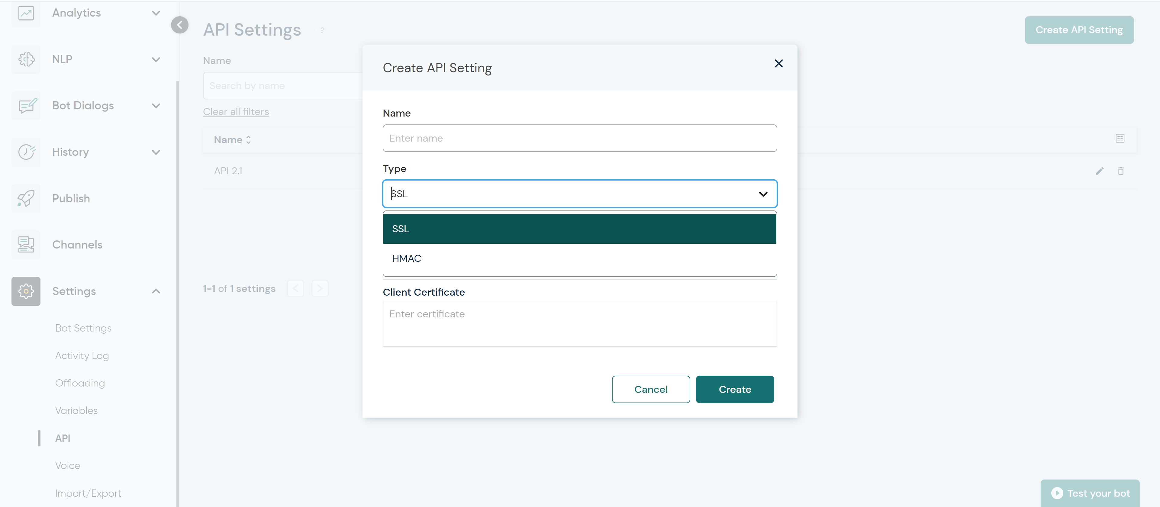 In the `Settings` menu under the `API` tab you can add encryption to the requests sent by Chatlayer.ai through the API plugin.&#x20;