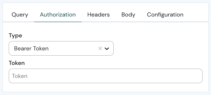 * **Bearer token**: will display the Token field to be filled in.