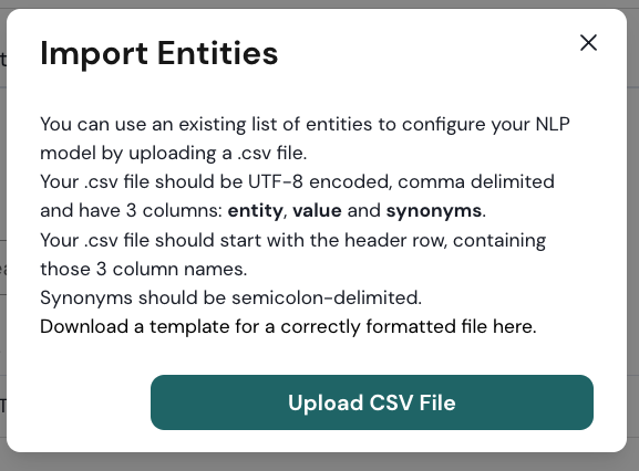2. Make sure to carefully read the modal so that you provide a .csv file with the appropriate format.