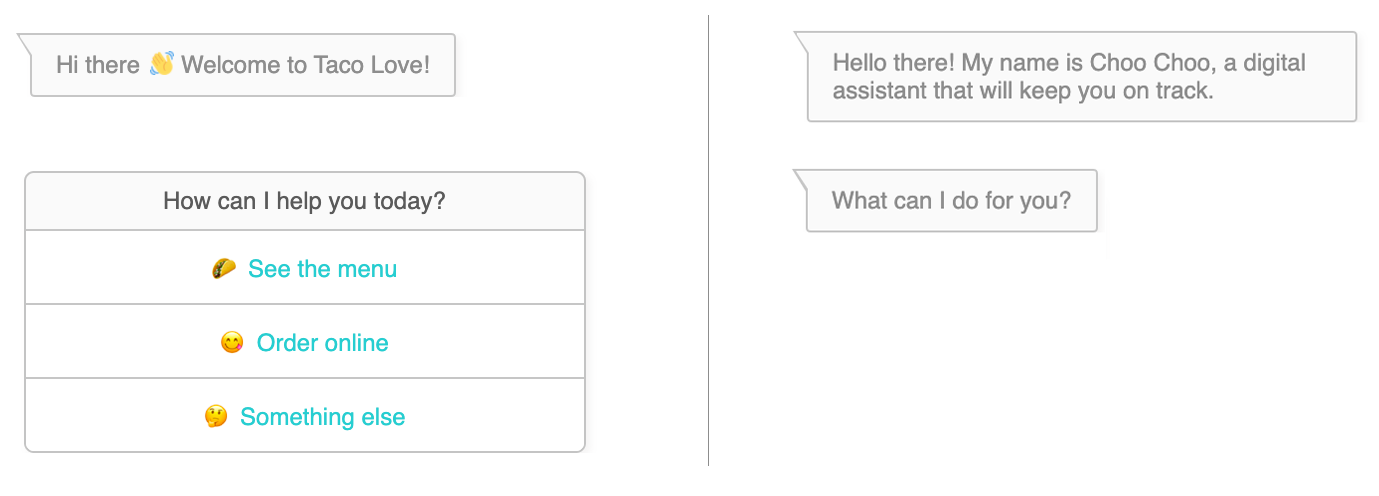 The bot introduction is a short message that welcomes the user and gets the conversation going. A good introduction greets the user, introduces the bot, and informs the user of the bot’s capabilities.