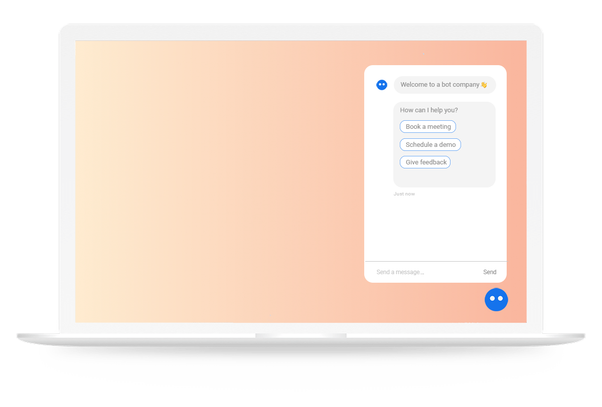 A chat widget is a ready-to-use, fully customizable chat window that can be added to your website — you know, that little blob at the bottom of your screen — through which users can talk to your bot.