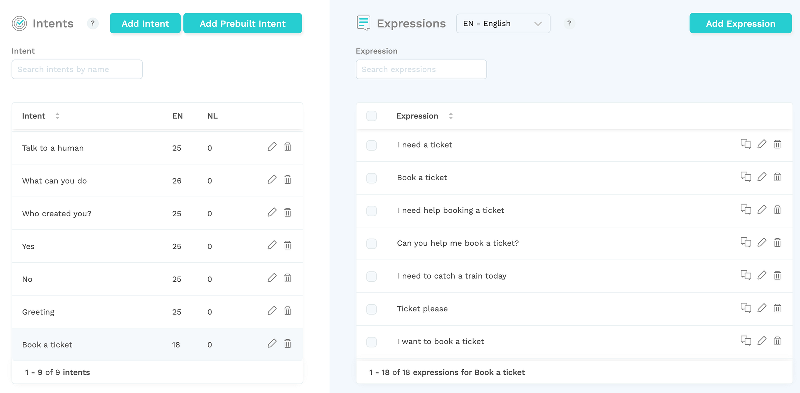 It’s important to feed your bot a decent amount of expressions so it can train to recognize the user’s intent more easily.