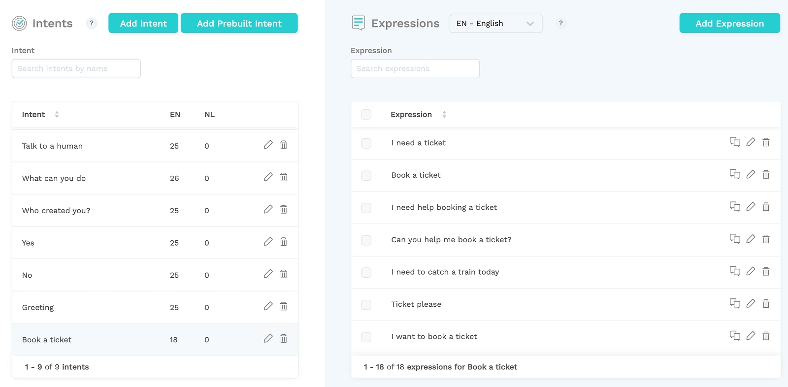 One and the same intent can be expressed via all sorts of expressions. For example, the intent “book a ticket” can be expressed by the user as:
